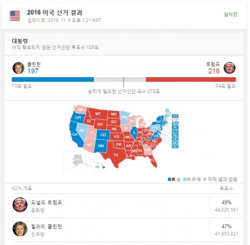 트럼프가 휙휙 앞서나갑니다. -..-;