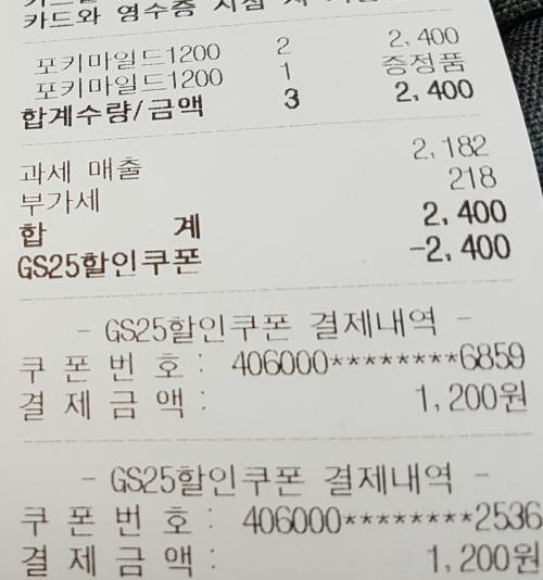 포키쿠폰 바코드 2개 찍으면 결제됩니다