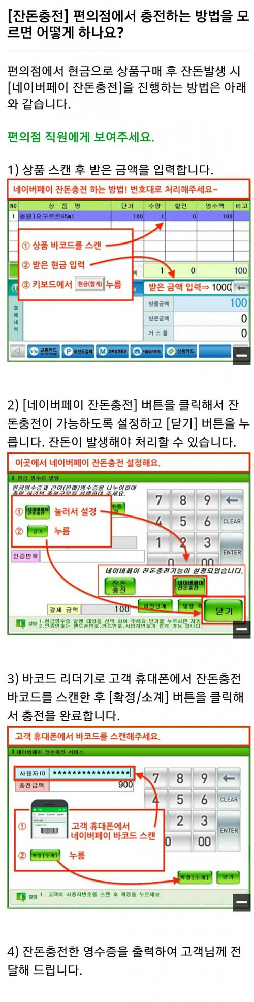 요게 대부분이에요. 제가 가본곳도 순서대로 설명해 주는데 네이버페이 잔돈 충전 클릭버튼이 아예 없었어요. 포스기 업데이트를 안해서 그런거 같다고 하더라구요