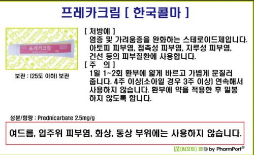 프레카크림: 프레드니카르베이트 2.5mg/g
