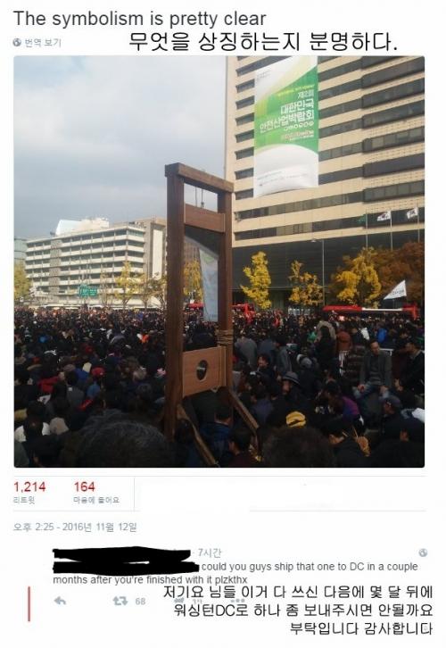 막상 선거에거 진 애들이 단두대가 어떠니 하능거죠. 단두대 찾기전에 선거나 이기고 볼일이지... 1번찍으면 나라 망한다고 그렇게 이야기해도 개무시하더니 촛불들고 나가면 뭐 역사의 주인공이라도 될줄아는 인간이랑 똑같은 부류임 | ||