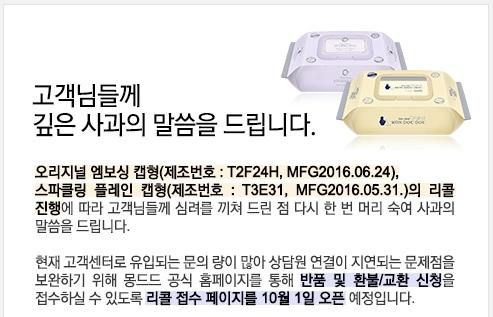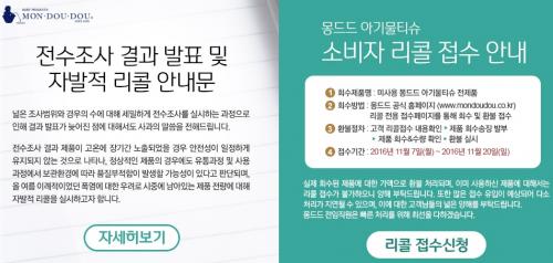 아기물티슈 일부 제품에서 기준치 이상의 일반세균이 검출되어 해당 제품에 대한 리콜을 진행하고 있는 몽드드가 리콜 처리 지연으로 인한 소비자 불만에....