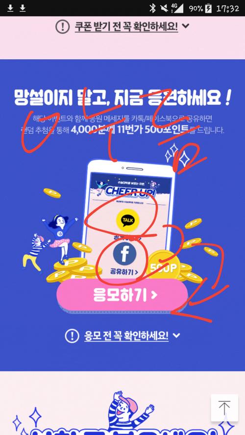 가셔서 저 빨간동그라미 누르고 응모하심 됩니다ㅎ
