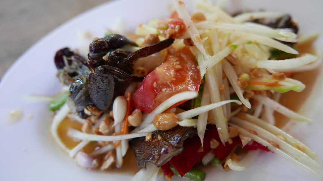 게 들어간 쏨땀. 왠만하면 그냥 쏨땀드세요. 저 게가 엄청 짜더라는;;;