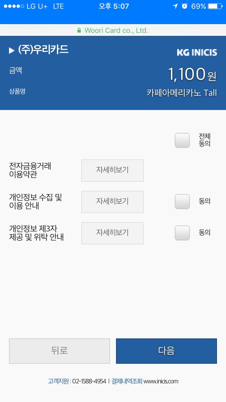 다음단계로 넘어가면 카드사선택 가능합니다.