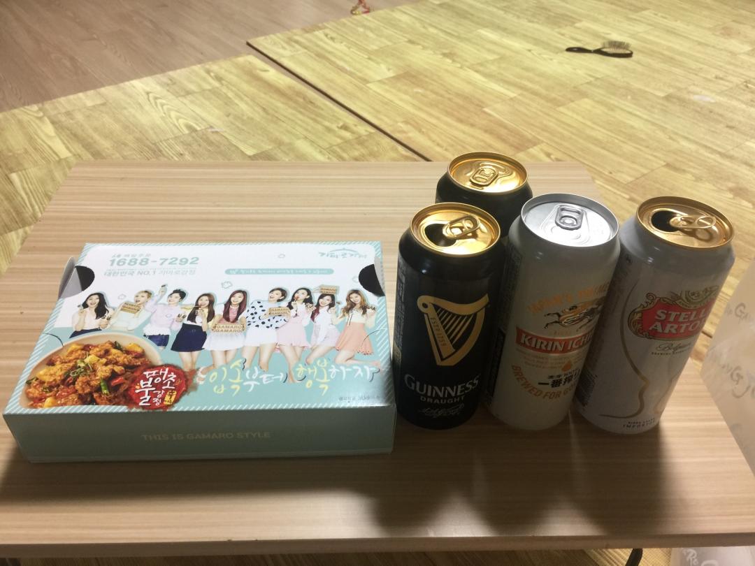 퇴근해서 집으로 오면서 치킨이랑 맥주 4캔 사왔어요..