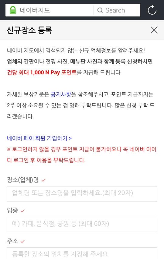 새로운 맛집/가게/업체를 등록해주시면 N pay 최대 1천 포인트!!