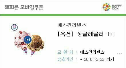 해피콘 제시하면 추가결제없이 2개 교환 가능한거 아닌가요?
