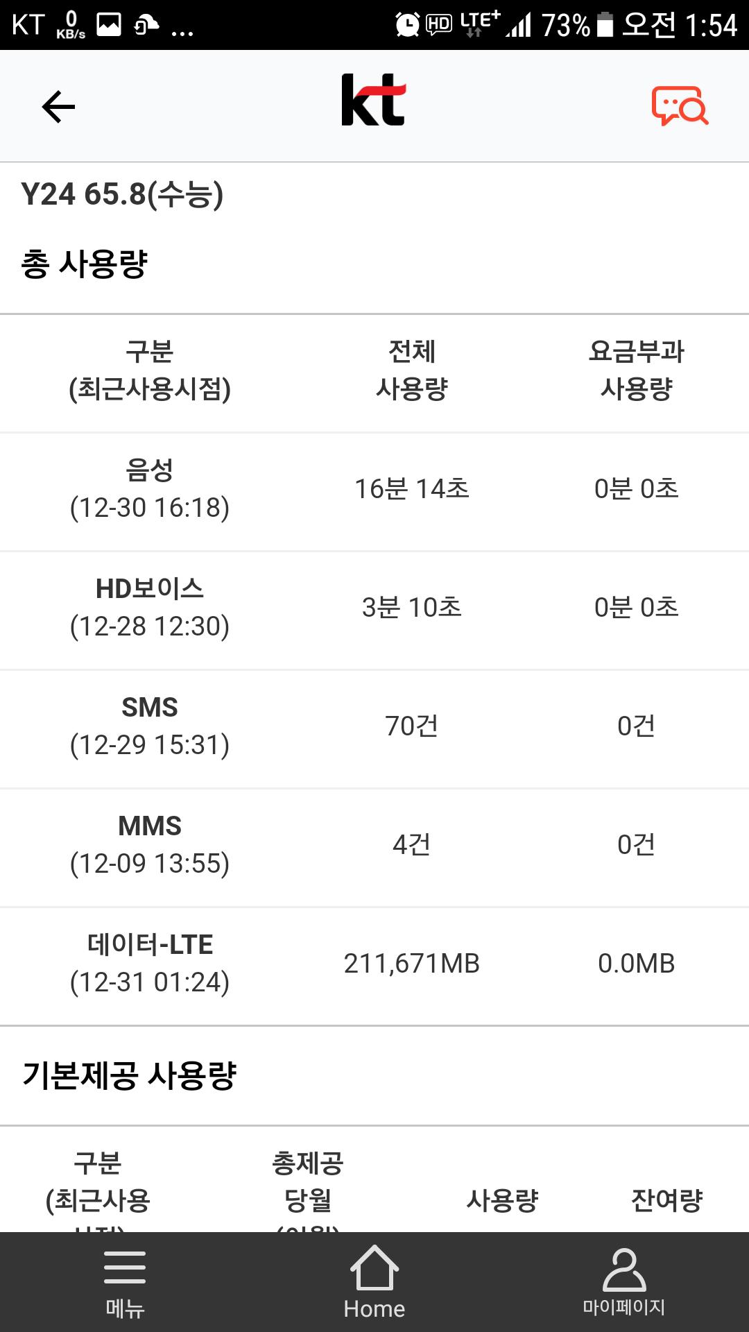 이게 요즘 어린친구들의 사용패턴이군요.... 통화량 20분에 데이터 211기가라니...ㅋㅋㅋ |