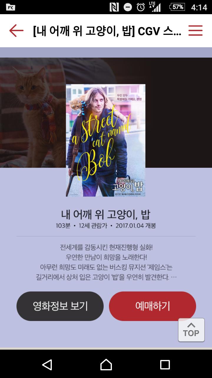 고양이가 연기를 자연스럽게 잘합니다. 고양이로 인해 인생역전한 사람 이야기인데 막 재미있지는 않은데 잔잔하게 볼만합니다. |