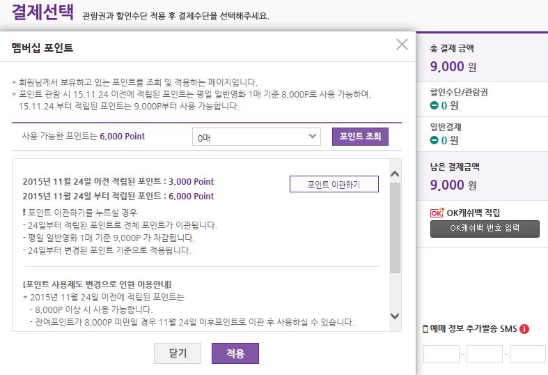 이전 적립된 포인트 3,000점 이지만 2015년 11월 24일 이후 적립된 포인트가 6,000점 이거든요.