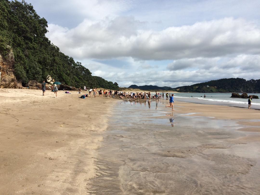 모래를 파면 뜨거운 물이 나오는 곳에 가서 물놀이했어요.