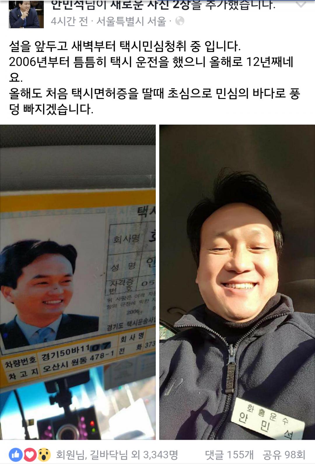오우 안민셕으원님 택시기사자격증도 있으시네요