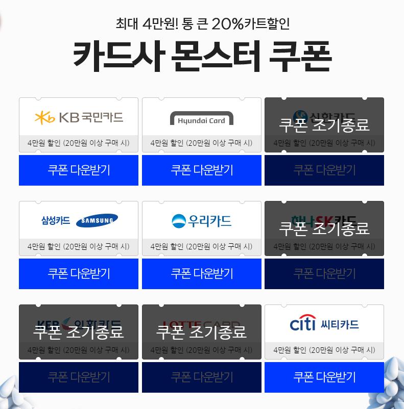 이벤시작 1일만 진행하고 신한/하나/외한/롯데카드는 안하는군요.