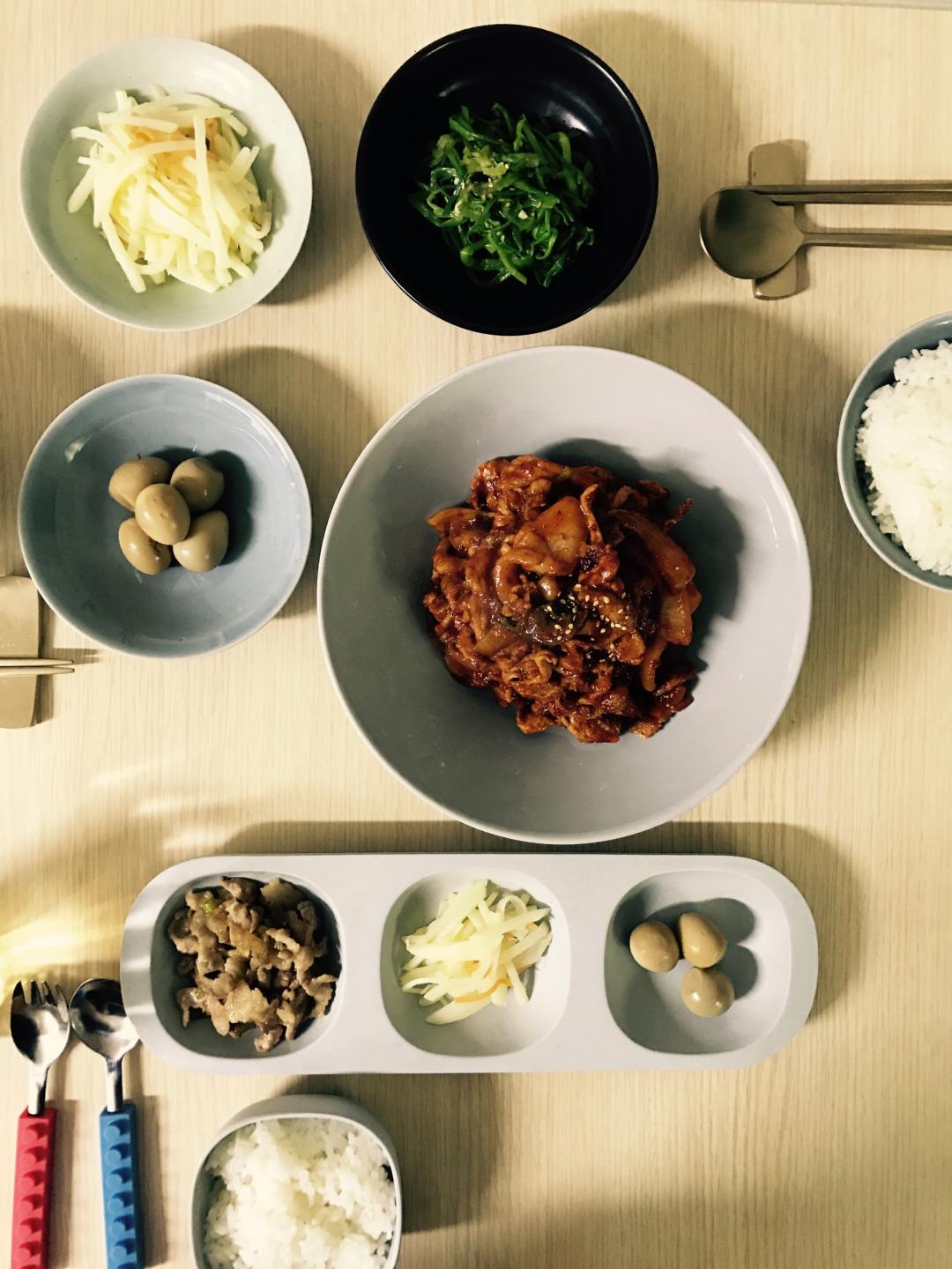 늦게 퇴근한 남편 술안주 찾으실것 같아 앞다리살로 볶은 제육볶음 이예요.