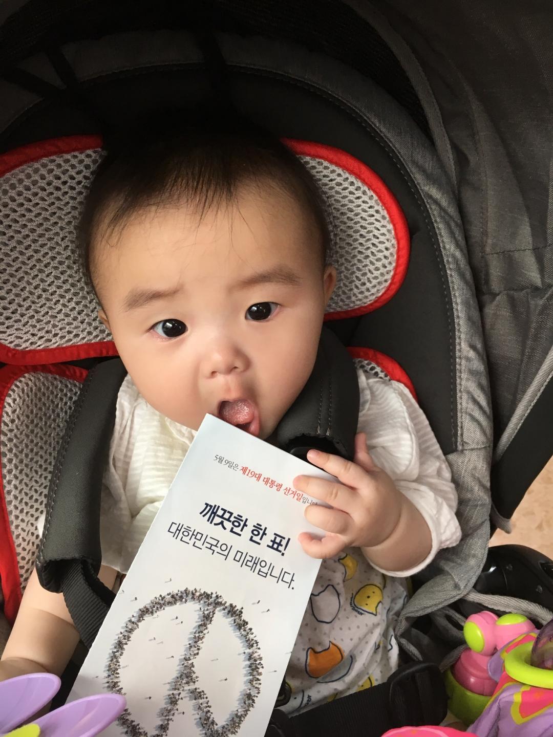투표소가 엘레베이터가 없는 주민센터 3층이라 유모차가 못올라가서