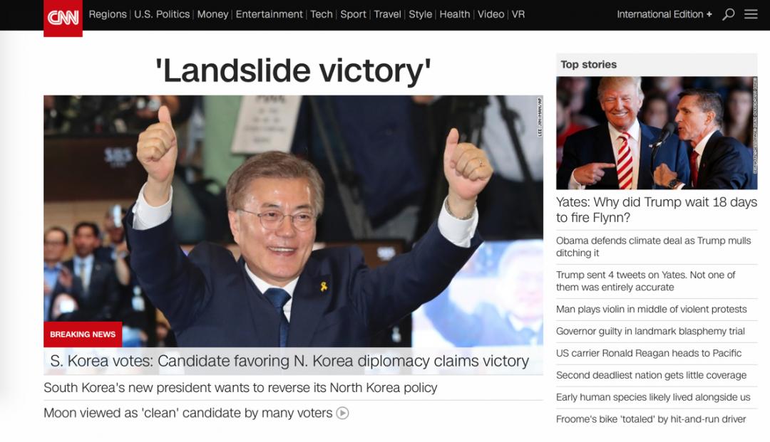 울나라 언론이 아닌 다른 나라에선 제대로 표현해주네요. 정말 LANDSLIDE 입니다.