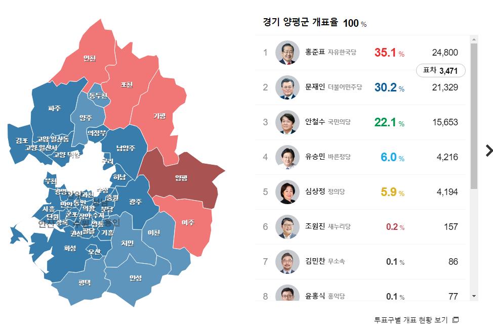 또한 경기도 동쪽이 보통 그러한데... 이번에도 그 색은 크게 변하지 않은것 같습니다.