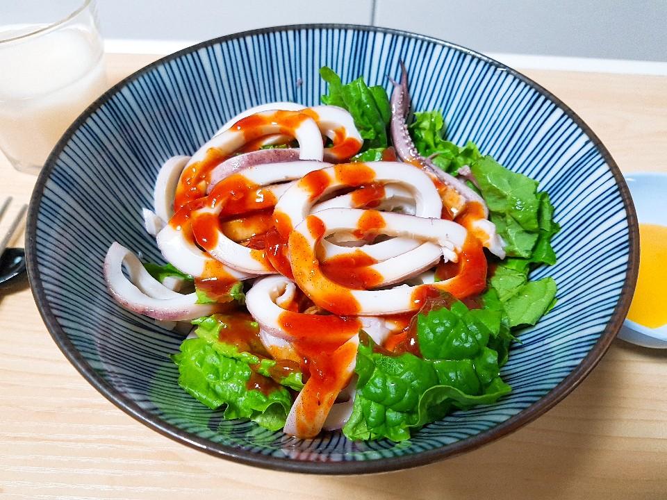 그릇 이쁘네요. 오징어 숙회는 직접 하신거죠?