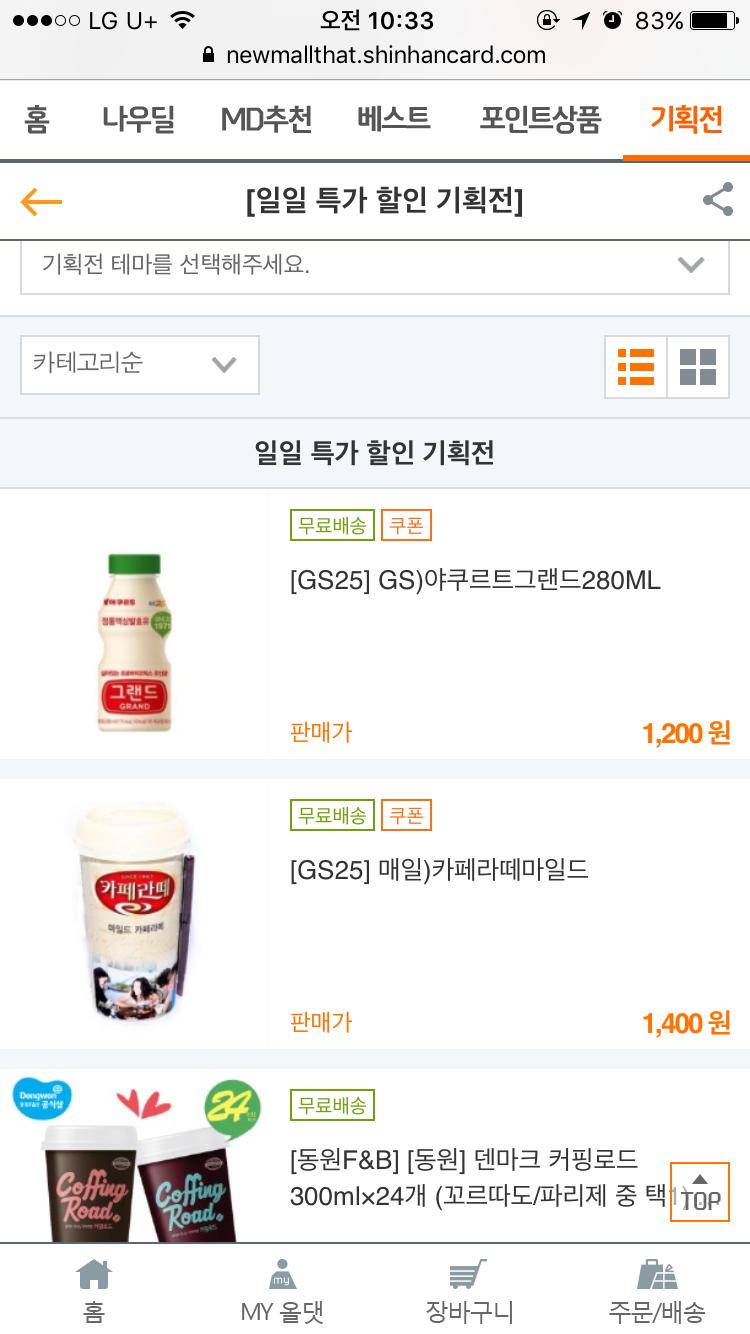 야쿠르트는 앱에서, 카페라떼는 위 주소 웹에서 구매해 보세요. 지금 카페라떼는 앱에서 적용이 안 된다고 하네요...^^ |