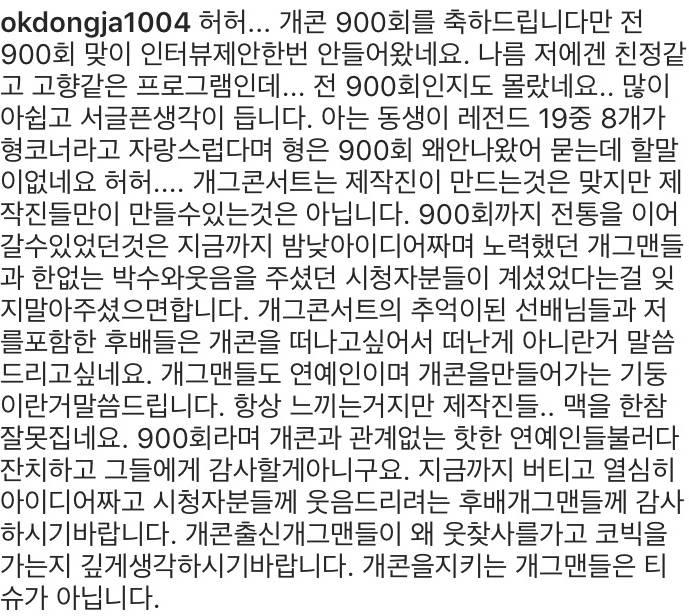 개그콘서트의 추억이된 선배님들과 저를포함한 후배들은 개콘을 떠나고싶어서 떠난게 아니란거 말씀드리고싶네요.