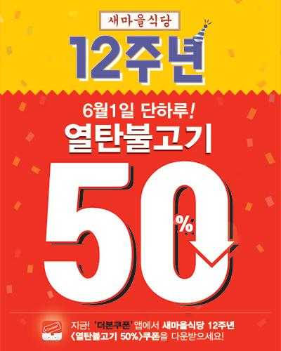 ▶행사기간: 6월 1일 단 하루▶새마을식당 12주년 기념 열탄불고기 50% 할인