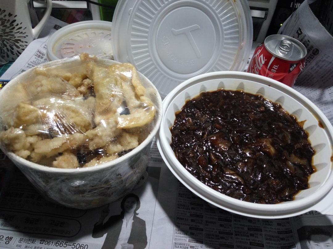 반은 소스에 부어놓고 반은 찍어먹습니다.ㅎㅎ |
