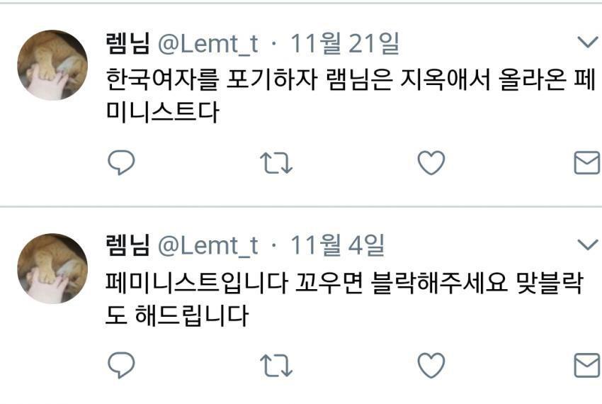 보기에는 그냥 어느 메갈리안의 트위터 같지만 ..