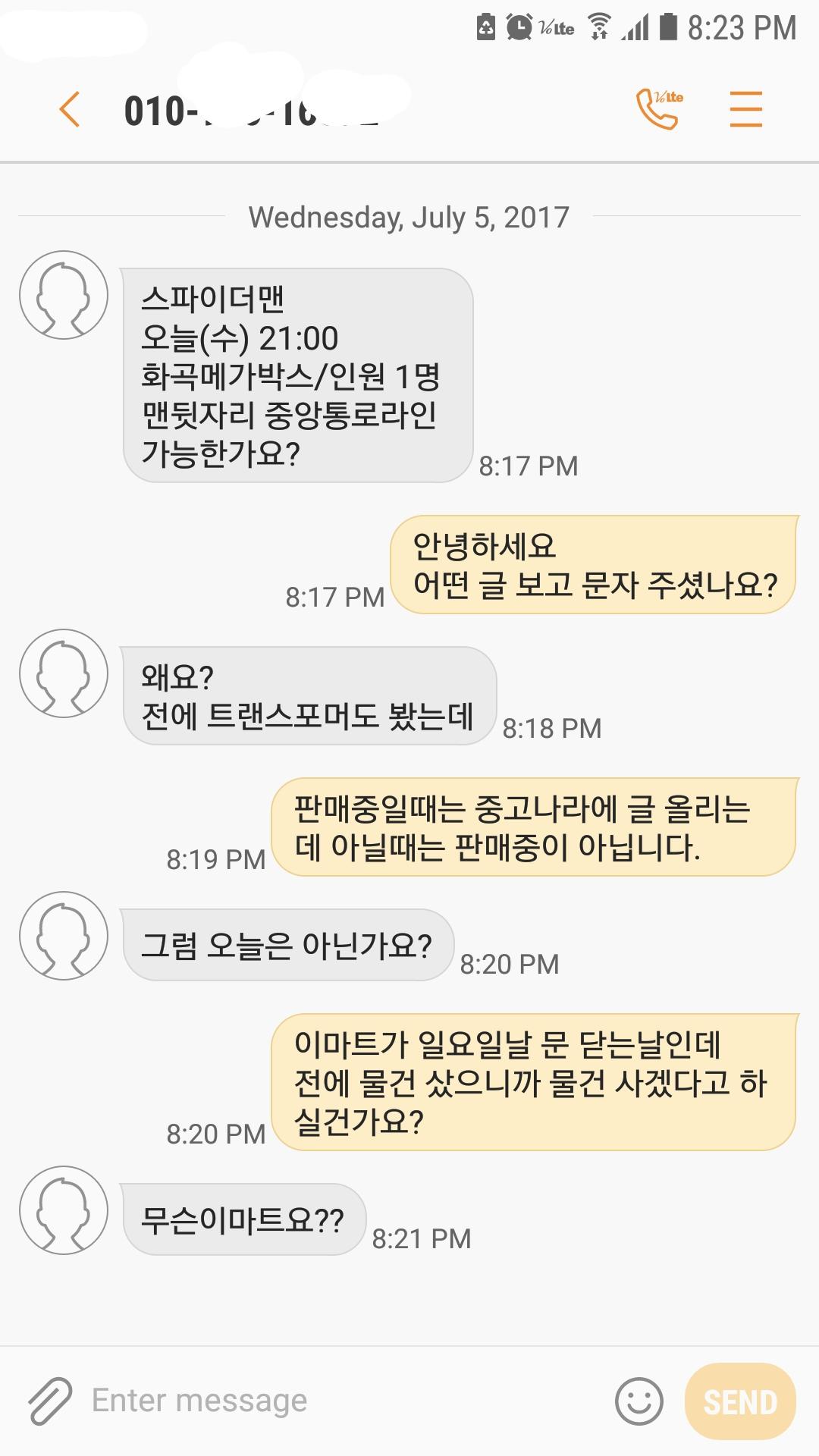 한동안 중고나라에는 판매글 올리지도 않았구요. 현재도 글이 없는 상태인데 오늘은 피곤해서 일찍 자려고 누웠는데 문자가 띡 오더군요.