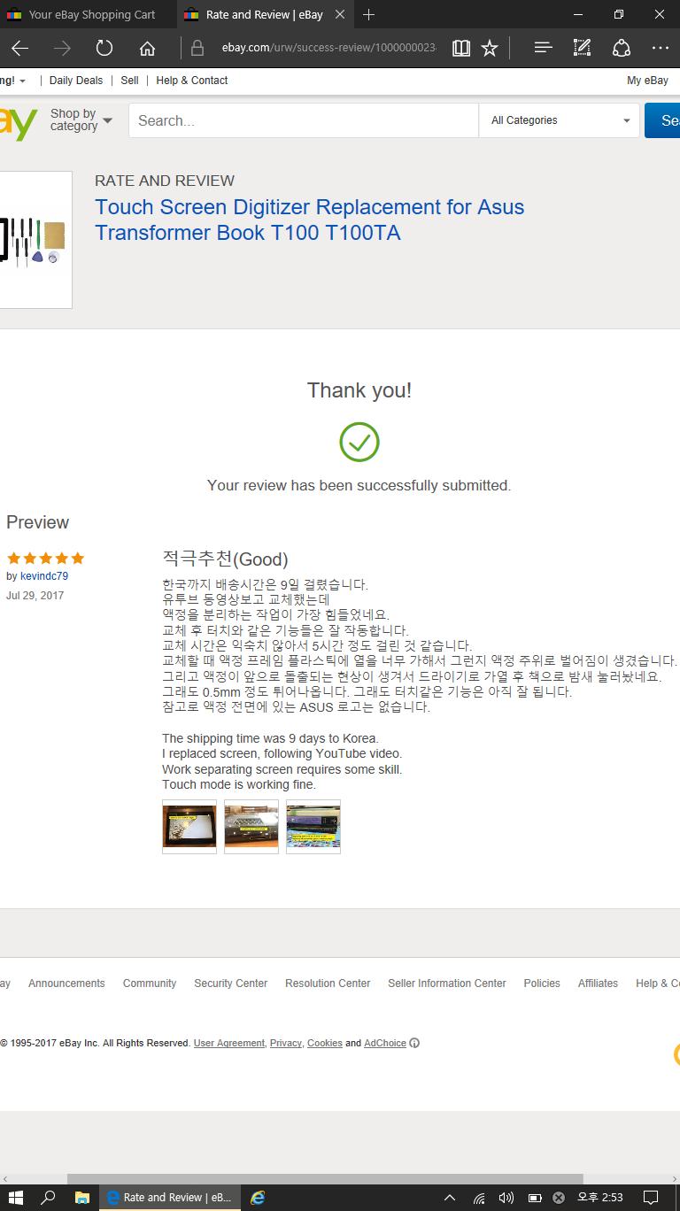 액정은 이베이에서 약 25,000원에 주문하고 9일만에 받았어요.