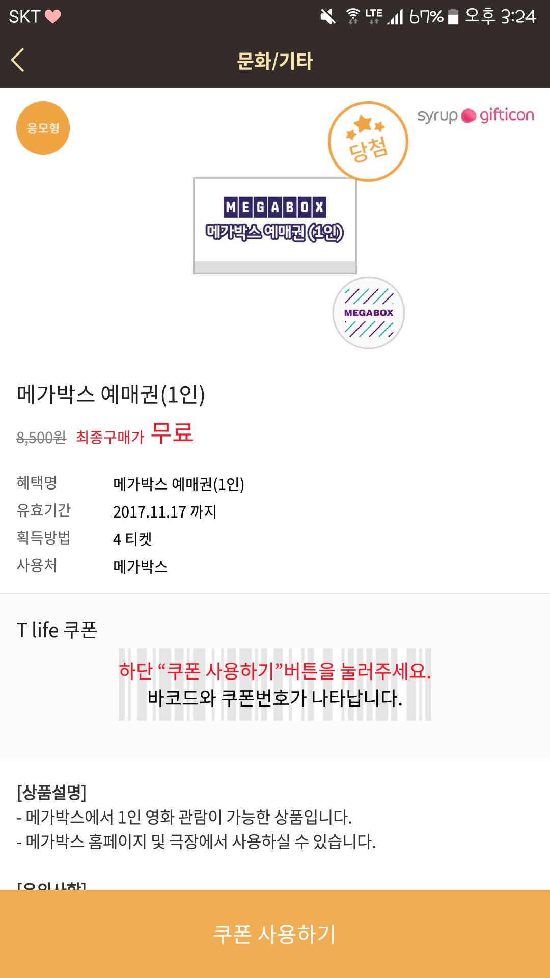 한달에 한두번 되는거같은데 그나마도 편의점1000원권같은 자잘한것만 되더라구요.ㅜ |