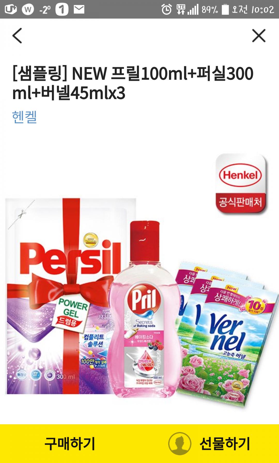 카톡) NEW 프릴100ml+퍼실300ml+버넬45mlx3(₩2,500)