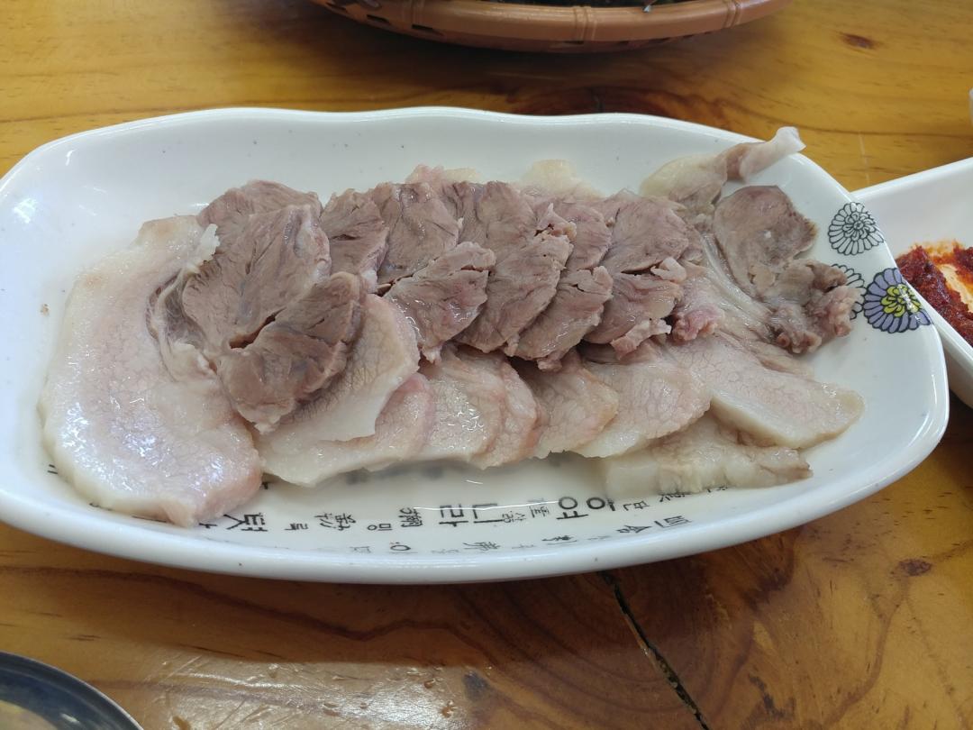 수육백반이네요...상추에 고기 얹히고 보쌈김치 넣어 먹으면 정말 맛있습니다. |