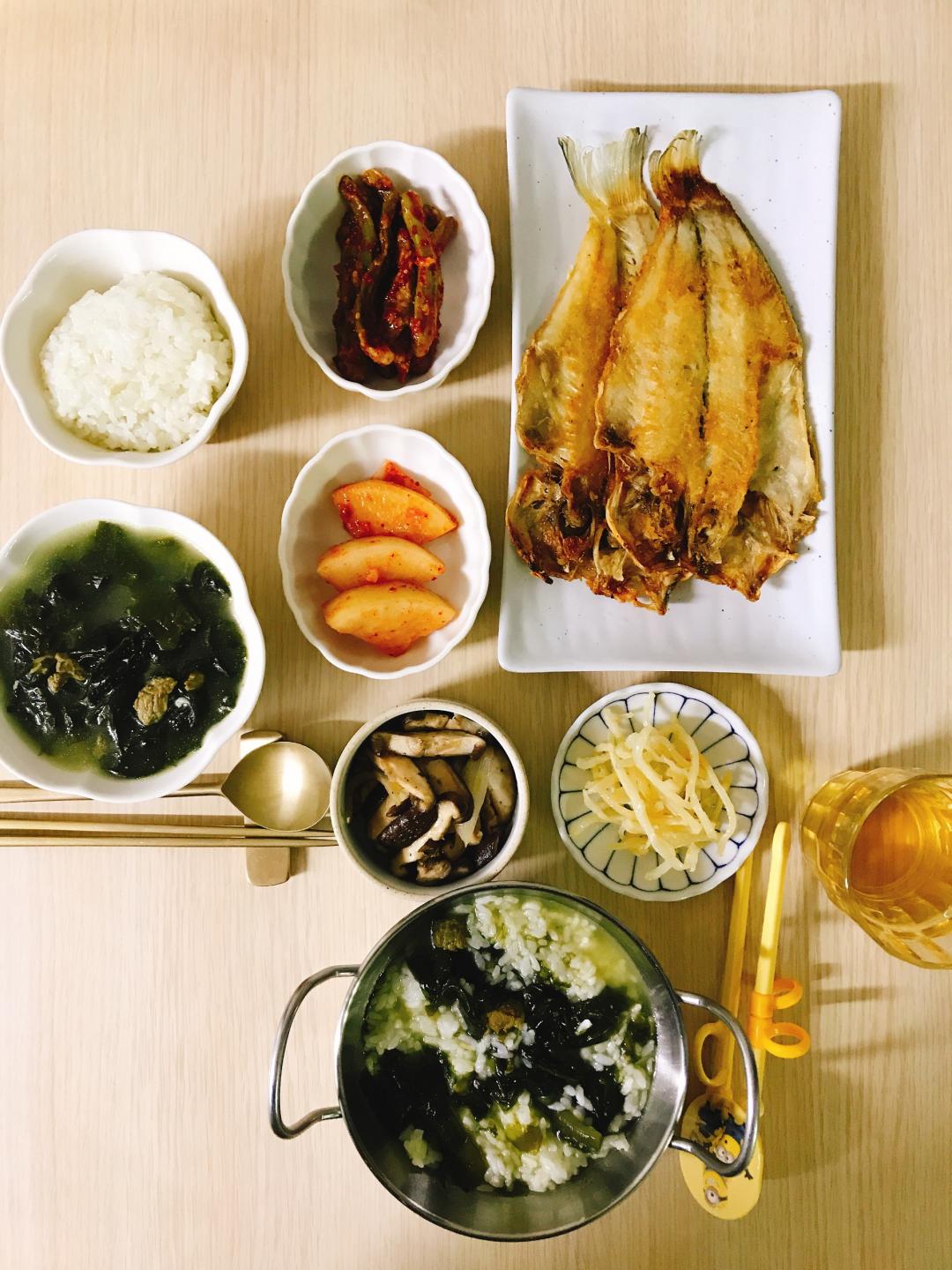 아이와 제가 좋아하는, 소고기미역국 과, 옥돔구이.