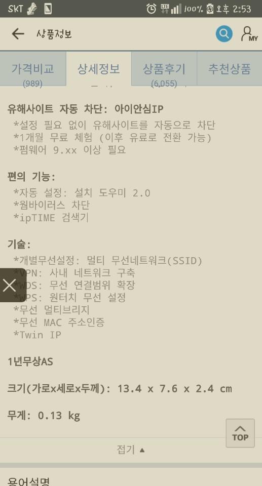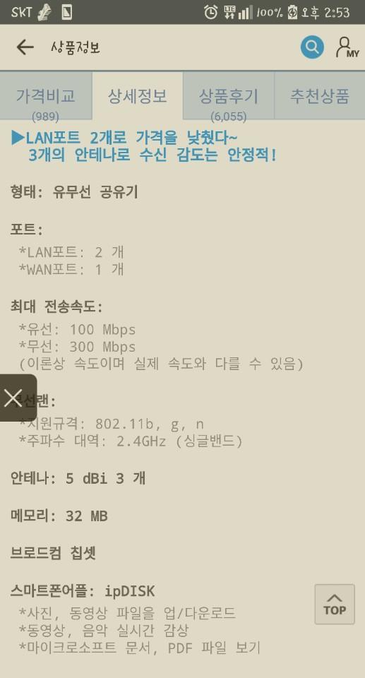 그냥 가장 최소한의 사양 아닌가요? 유선 100Mbps에 2.4Ghz만 지원하고 5Ghz 미지원. 브로드컴칩셋 사용한거외에는 딱히 장점은 없는듯요. 그냥 무난한정도. |