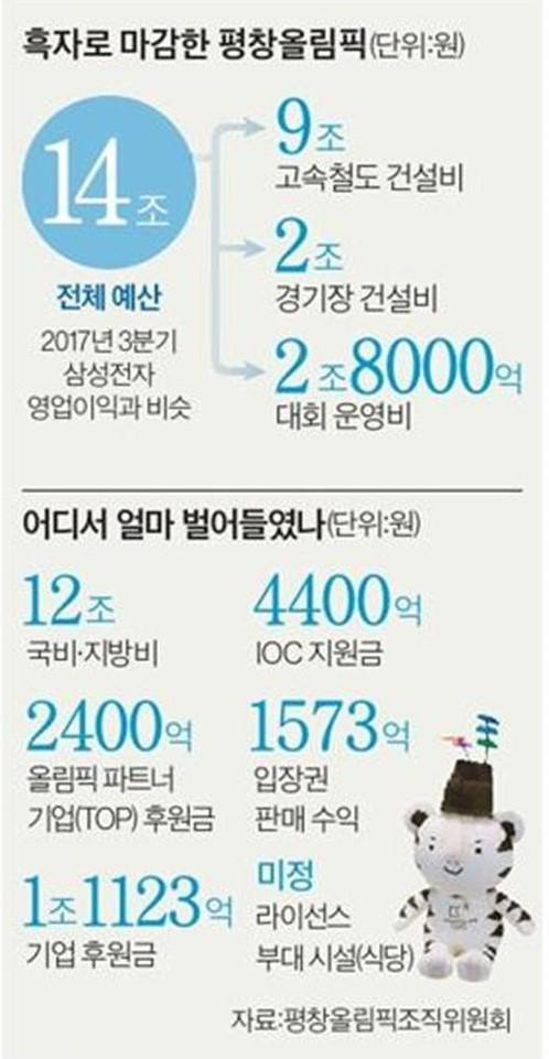 3. 평창 올림픽 적자 예상과 달리 흑자 가능성 → 입장권 107만장, 금액으로는 1573억 목표 초과. 수호랑 인형 10만개 판매 등 흥행 성공...(중앙 외)▼
