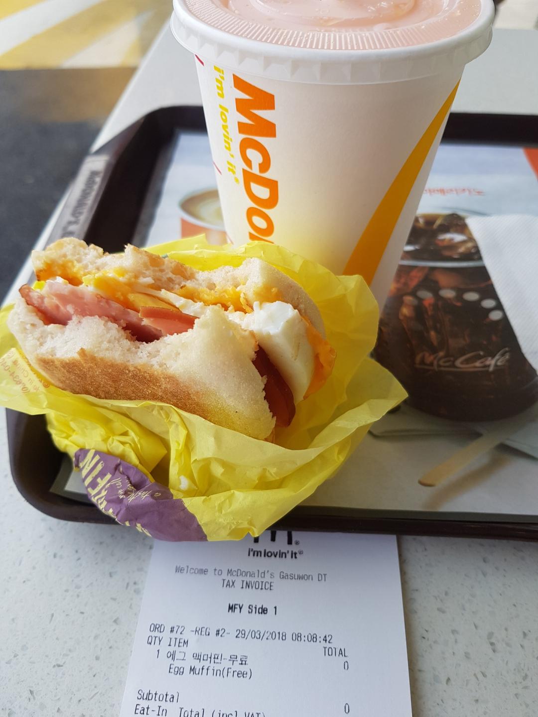 저는 에그 맥머핀만 구매할꺼냐고 물어보길래 "네"라고 대답했어요^^ |