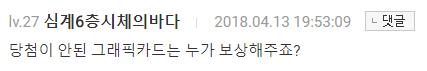 지금 딜바다의 광고에도 도배되어있는 니드포스피드 엣지 그래픽카드 이벤트 댓글중 하나입니다