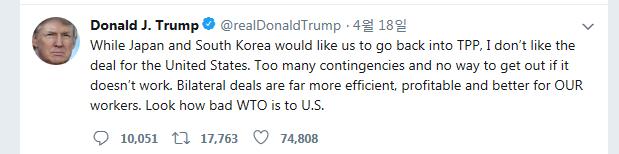우리나라는 원래 TPP에 관심이 없었고... 그 세부항목에만 관심을 가지고 있었는데 세부항목은 기존과 같았고