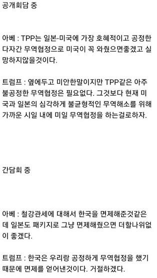 하지만 일본은 TPP에 목숨 걸만해요. 오바마 행정부 시절 엄청나게 공들이고 투자한게 많은데 트럼프는 일축!!!