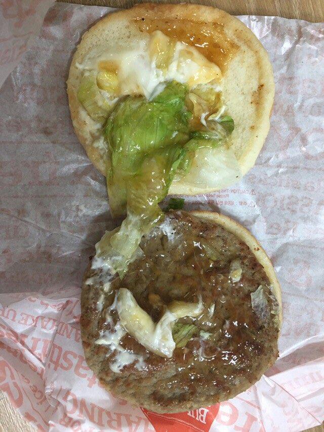 버거킹도 행사상품은 미리 만들어놓는지라 상태 처참합니다. |