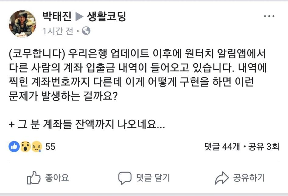 헐.. 어무니 우리은행 앱 쓰시는데 집에가서 확인해봐야겠군요 |