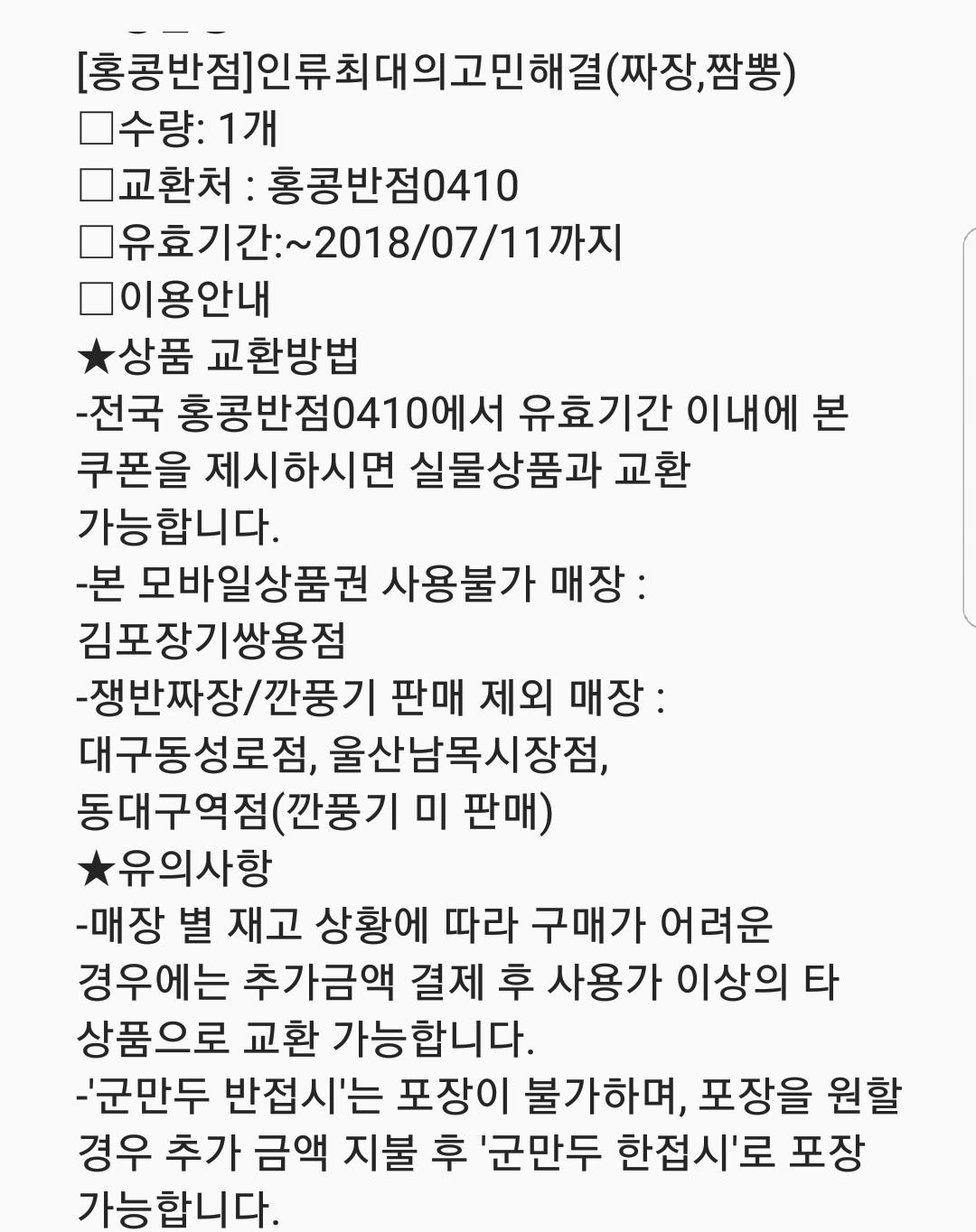 홍콩반점 짜장 짬뽕 세트 만원 기프티콘