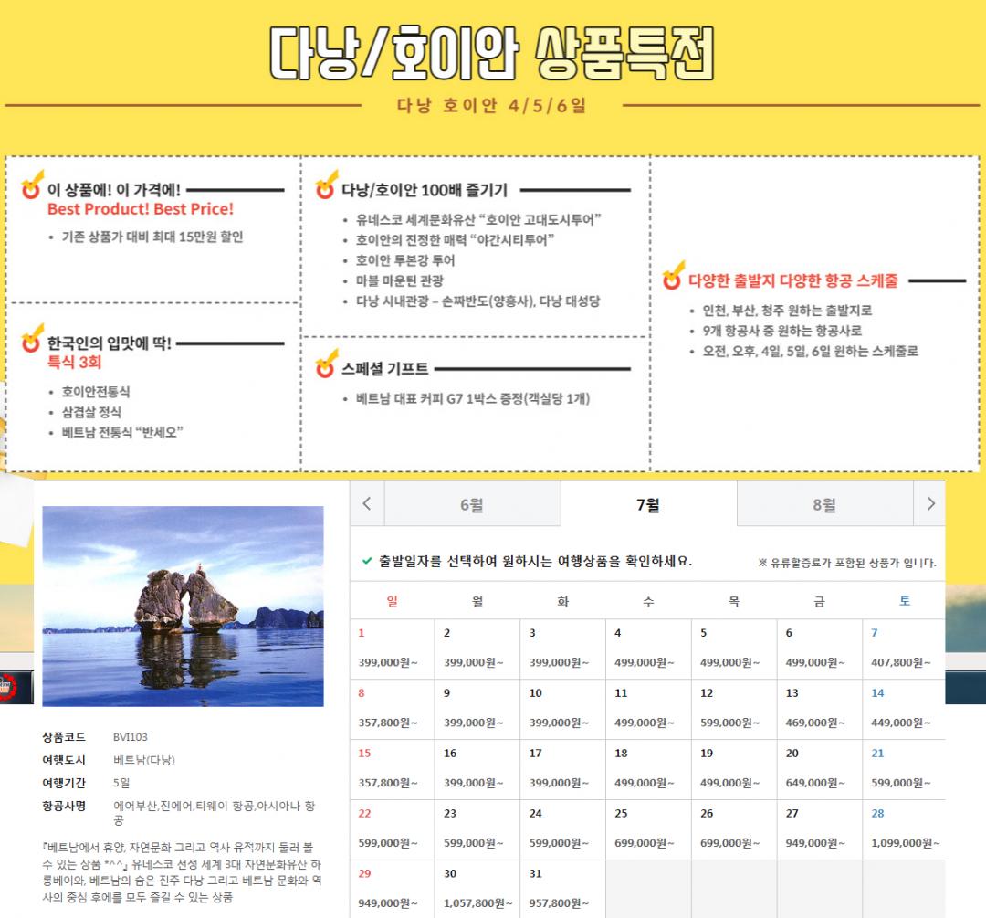 더불어 베트남 패키지는 7월 초가 저렴한것 같으니 생각있으신 분은 요맘때 찾아보시면 괜찮을 듯 해요.