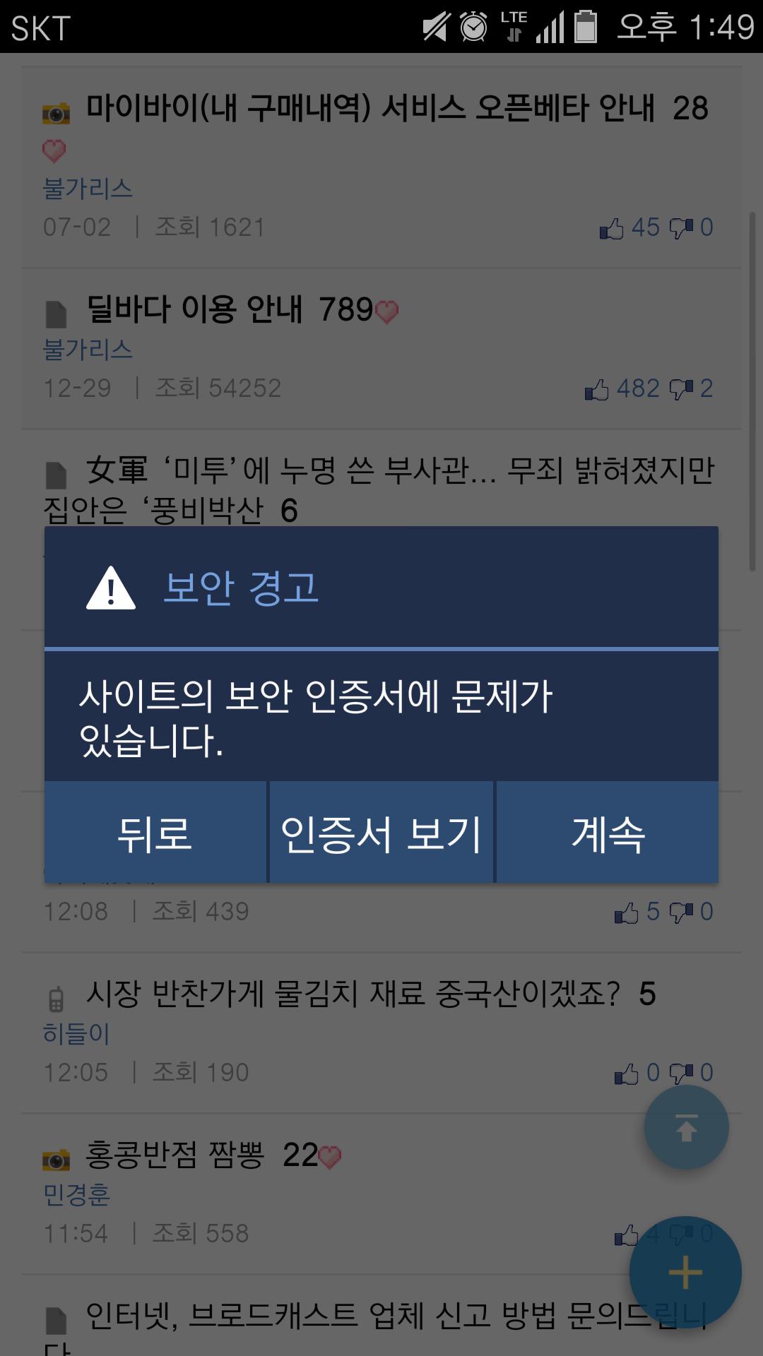 글을 보는데 자꾸 인증서 오류있다고 뜨네요