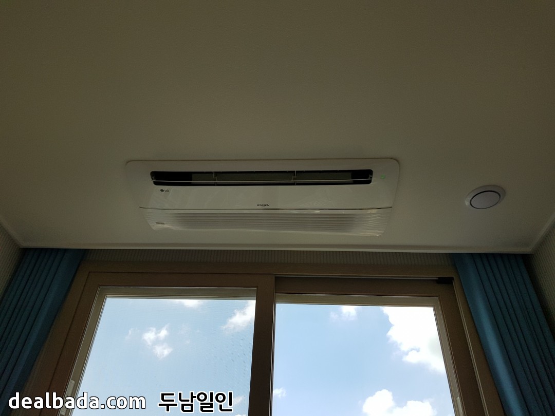 저희는 거실만 시스템인데 전기세 많이 나오고 별로 안 쉬원하다고 해서 세입자 나가고 이사들어오면서 사용하던 2인1 스탠드 에어컨을 시스템 에어컨배관을 이용해서 설치하였습니다. |