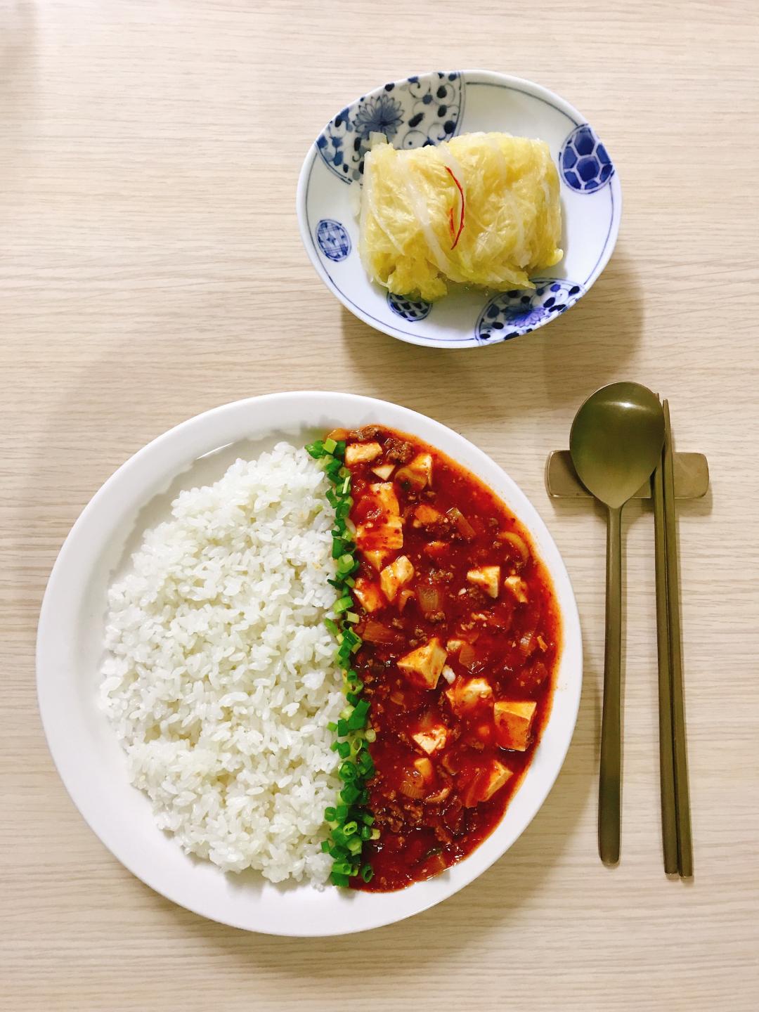 아이는 불고기뚝배기 로, 남편은 마파두부덮밥을 준비 했답니다.