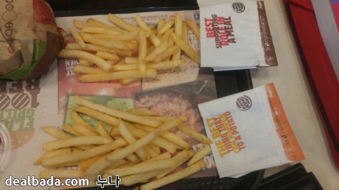요즘은 레귤러가 양이 줄어들어서 그런지 라지랑 양차이가 많이 났었는데 이 지점은 비슷하네요...제가 자주 가는 버거킹 지점보다 오히려 레귤러 양은 더 많아 보여요... |