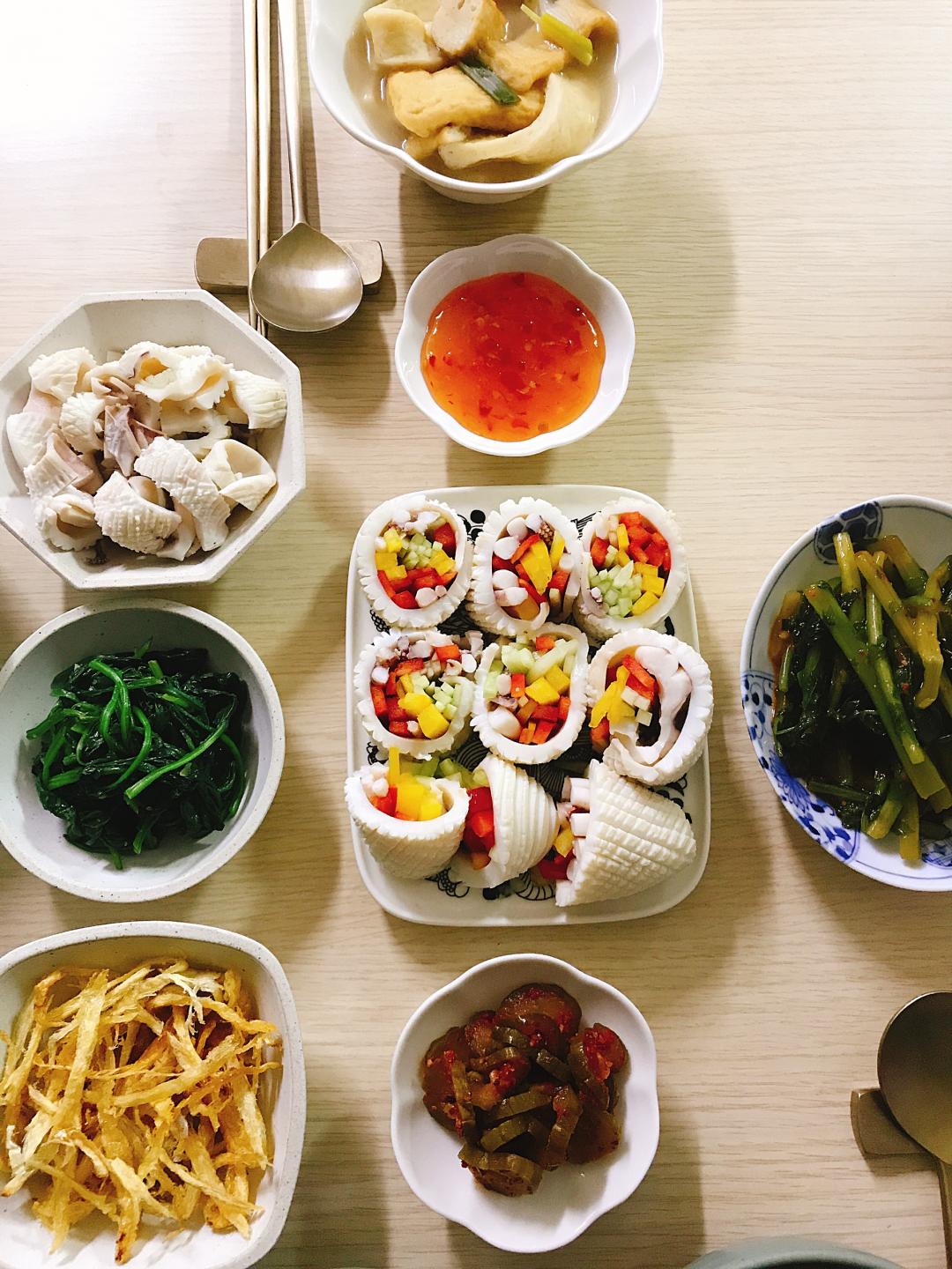 예쁘고 맛있어 보이는 것도 대단한데 오징어에 칼집 넣으신 거 보니 정성이 정말 장난이 아니네요.. 최고의 저녁이네요! |
