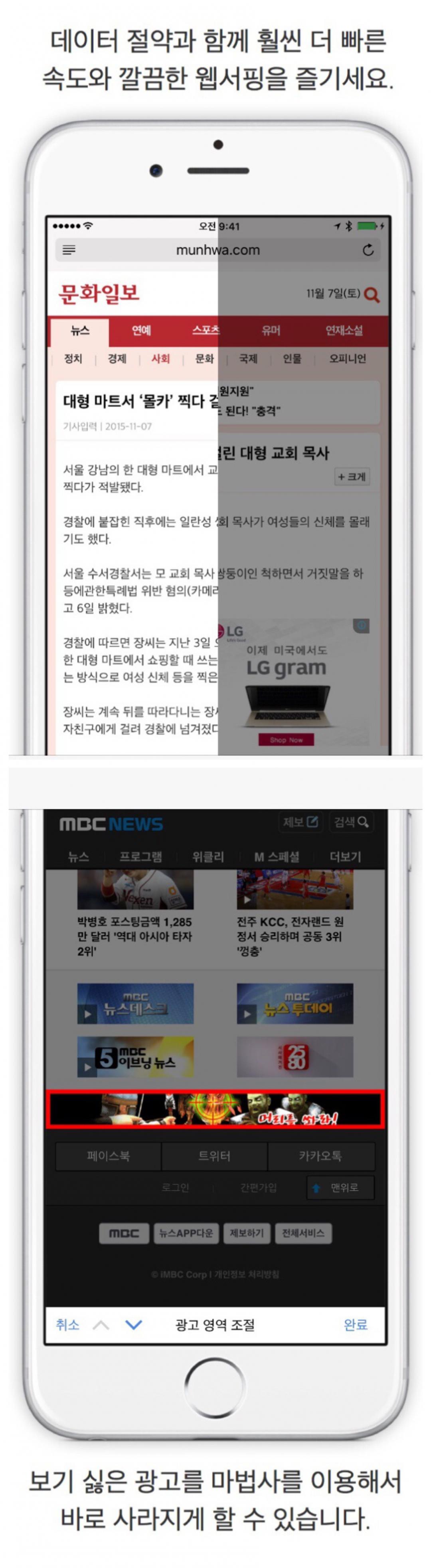 광고를 차단해서 데이터를 아끼고 속도를 늘려주는 앱입니다.